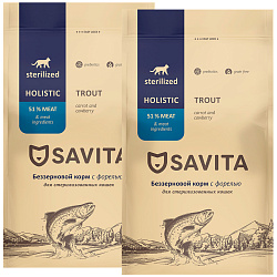 Сухой корм SAVITA STERILISED CATS TROUT класса холистик содержит высокий процент мясных ингредиентов, необходимых витаминов и минералов, без добавления зерновых культур в составе. Надолго обеспечивает кошку необходимой энергией на весь день. Каждый ингредиент тщательно подобран в соответствии с природными потребностями питомца и является важным компонентом в рецептуре корма, минимизируя риск возникновения аллергических реакций.