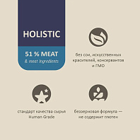 - Корма изготовлены из натурального сырья по стандарту качества HUMAN GRADE.