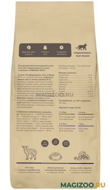 Полнорационный низкозерновой сухой корм для взрослых кастрированных котов и стерилизованных кошек с ягненком, бурым рисом, брокколи и клюквой.