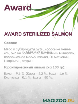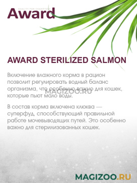 AWARD - это не просто корм, это функциональные рецептуры, которые работают. Выбирая AWARD, Вы выбираете осознанный подход к питанию Вашего питомца!
