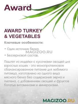 Влажный корм AWARD для взрослых кошек паштет из индейки с овощами.