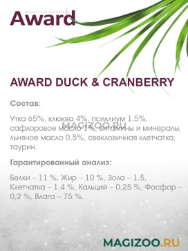 AWARD - это не просто корм, это функциональные рецептуры, которые работают. Выбирая AWARD, Вы выбираете осознанный подход к питанию Вашего питомца!