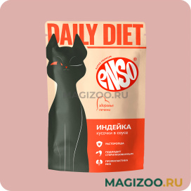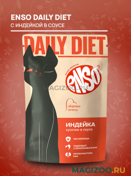 ENSO DAILY DIET Полнорационный влажный профилактический корм для взрослых кошек для поддержания здоровья печени, кусочки с индейкой в соусе.