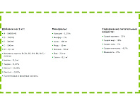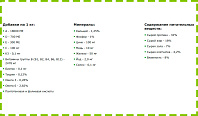 Минералы: кальций - 1,25%, фосфор - 1%, цинк - 100 мг, медь - 10 мг, железо - 50 мг, йод - 2,0 мг, селен - 0,1 мг.