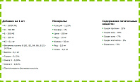 Минералы: кальций - 1,25%, фосфор - 1%, цинк - 100 мг, медь - 10 мг, железо - 50 мг, йод - 2,0 мг, селен - 0,1 мг.