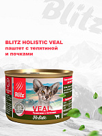 Мясной паштет Blitz Holistic «Телятина с почками» – настоящее искушение для привередливых кошек.