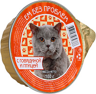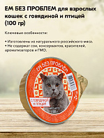 Полнорационный влажный корм для взрослых кошек с говядиной и птицей.