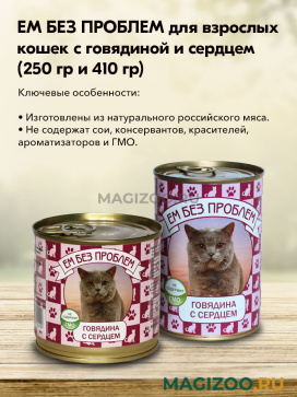 Полнорационный корм для взрослых кошек с говядиной и сердцем.