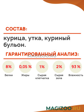 - Просто натуральный состав, только курица с уткой и бульон.