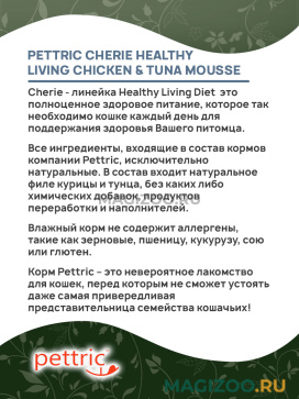 Влажный корм (консервы) PETTRIC CHERIE HEALTHY LIVING CHICKEN & TUNA MOUSSE для взрослых кошек мусс с курицей и тунцом (80 гр)