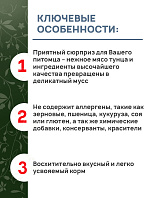 - Приятный сюрприз для Вашего питомца – нежное мясо тунца и ингредиенты высочайшего качества превращены в деликатный мусс.