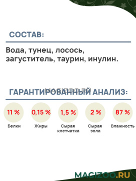 Вода, тунец, лосось, загуститель, таурин, инулин.