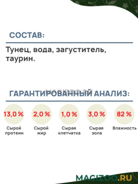 - Полнорационный корм с измельченными кусочками филе тунца в оригинальном соусе.