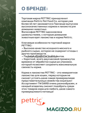 Информация о составе и ингредиентах, цветовом решении, технических и иных характеристиках, стране-изготовителе, внешнем виде и комплекте поставки товара носит справочный характер и основана на последних доступных к моменту публикации сведениях. Доставка данного товара осуществляется во все регионы РФ.Философия PETTRIC вдохновлена удовольствием, с которым домашние животные едят лакомства и корма Pettric.