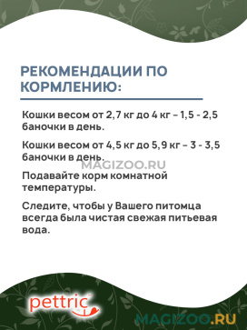 Информация о составе и ингредиентах, цветовом решении, технических и иных характеристиках, стране-изготовителе, внешнем виде и комплекте поставки товара носит справочный характер и основана на последних доступных к моменту публикации сведениях. Доставка данного товара осуществляется во все регионы РФ.Философия PETTRIC вдохновлена удовольствием, с которым домашние животные едят лакомства и корма Pettric.