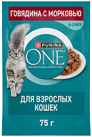 Влажный корм PURINA ONE для взрослых кастрированных котов и стерилизованных кошек с говядиной и морковью в виде консервы нравится очень моему котику. Корм восполняет все потери белков и углеводов. В его составе не вижу ничего криминального, много нужных веществ. С одного пауча кот наедается, вес держится в норме!