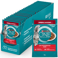 Влажный корм (консервы) PURINA ONE для взрослых кастрированных котов и стерилизованных кошек с говядиной и морковью помогает здоровью питомцев!! Адаптированный корм насыщает организм витаминами и в то же время снижает вероятность набора веса и проблем с почками. Выглядит привлекательно, усатый с радостью кушает это корм!