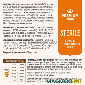 SIRIUS — сухой корм премиум-класса для полноценного ежедневного рациона кастрированных котов и стерилизованных кошек.