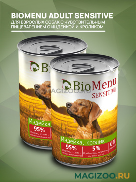 Полноценный консервированный рацион для взрослых собак с индейкой и кроликом.