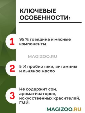 - Полезный. Без лишних компонентов, не свойственных рациону хищников в природе.