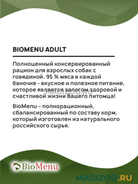 BioMenu – полнорационный, сбалансированный по составу корм, который изготовлен из натурального российского сырья.