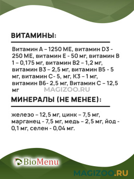 BioMenu – полнорационный, сбалансированный по составу корм, который изготовлен из натурального российского сырья.