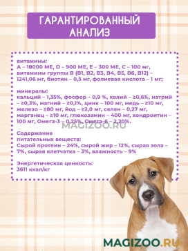 - Не содержит белок птицы, поэтому может быть рекомендован для собак, склонных к аллергии.