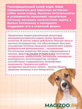 Полнорационный сухой корм. Корм предназначен для взрослых активных собак мини пород.