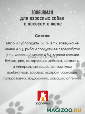 Информация о составе и ингредиентах, цветовом решении, технических и иных характеристиках, стране-изготовителе, внешнем виде и комплекте поставки товара носит справочный характер и основана на последних доступных к моменту публикации сведениях. Доставка данного товара осуществляется во все регионы РФ.ЗООГУРМАН производит натуральные мясные консервы, сухой корм, каши моментального приготовления и сушеные мясные лакомства, рассчитанные на собак и кошек, владельцы которых заботятся о качественном и полноценном питании для своих любимцев.