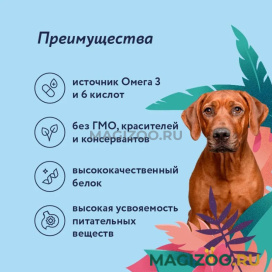 Крупные гранулы специально адаптированы для сильных челюстей и крепких зубов взрослых собак. Корм легко пережевывается, предотвращая заглатывание гранул целиком и застревание в дыхательных путях.
