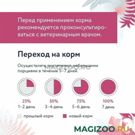 Перед применением корма рекомендуем проконсультироваться с ветеринарным врачом.