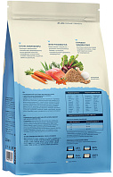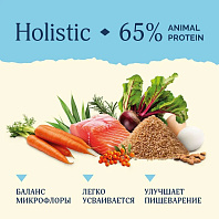 Мясо и мясные ингредиенты – 38 % (дегидрированное куриное мясо – 28 %, свежая говядина – 10 %), рис, кукуруза, животный жир, высушенная мякоть свёклы, гидролизат белков животного происхождения, экстракт растительного белка, семена льна, витамины, дегидрированное яйцо, лососёвый жир, минеральные вещества, дрожжи пивные, экстракт цикория.
