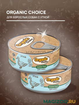 Монокомпонентные консервы Organic Choice класса холистик для взрослых собак с уткой.