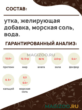 Состав: утка, желирующая добавка, морская соль, вода.