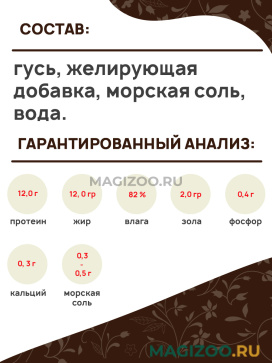 Состав: гусь, желирующая добавка, морская соль, вода.