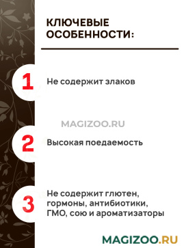 Информация о составе и ингредиентах, цветовом решении, технических и иных характеристиках, стране-изготовителе, внешнем виде и комплекте поставки товара носит справочный характер и основана на последних доступных к моменту публикации сведениях. Доставка данного товара осуществляется во все регионы РФ.Ингредиенты, из которых изготовлены корма, проходят тщательный отбор и соответствуют высоким мировым стандартам качества Human Grade - ингредиенты, которые предназначены для питания человека.