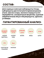 Состав: мясо курицы и мясные субпродукты птицы, субпродукты растительного происхождения, злаки, масла и жиры, молоко и продукты его переработки, минеральные вещества, куриные (перепелиные) яйца и яйцепродукты, дрожжи, углеводы.