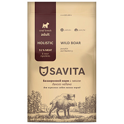 Сухой корм SAVITA ADULT DOGS BOAR класса холистик содержит высокий процент мясных ингредиентов, необходимых витаминов и минералов, без добавления зерновых культур в составе. Надолго обеспечивает собаку необходимой энергией на весь день. Каждый ингредиент тщательно подобран в соответствии с природными потребностями питомца и является важным компонентом в рецептуре корма, минимизируя риск возникновения аллергических реакций.