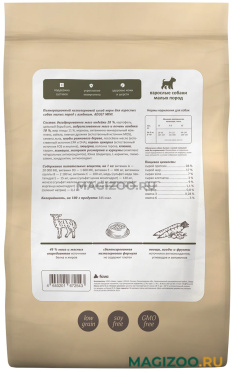 Полнорационный низкозерновой сухой корм для взрослых собак с ягненком, бурым рисом, морковью и клюквой.
