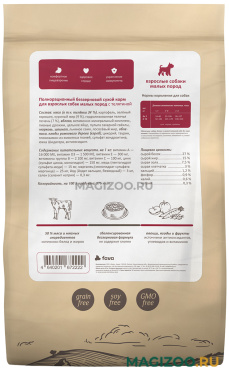 Беззерновой сухой корм для взрослых собак маленьких пород с телятиной, морковью и облепихой.