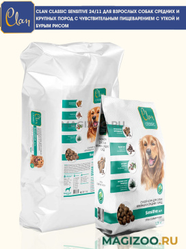 Сухой корм Clan Classic премиум класса для взрослых собак крупных и средних пород с чувствительным пищеварением содержит в составе полноценный набор всех жизненно важных витаминов, минералов, антиоксидантов и аминокислот.