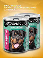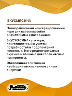 ВКУСМЯСИНА - это корм, приготовленный с учетом потребностей и предпочтений животных. В его рецептуре самые вкусные и лакомые для собак мясные компоненты.