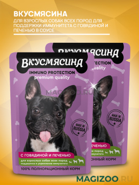 ВКУСМЯСИНА - это корм, приготовленный с учетом потребностей и предпочтений животных. В его рецептуре самые вкусные и лакомые для собак мясные компоненты.