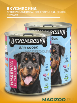 Полнорационный консервированный корм для взрослых собак ВКУСМЯСИНА «Индейка с рисом».