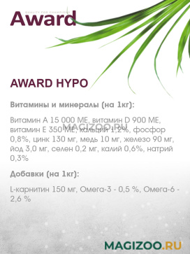 AWARD - это не просто корм, это функциональные рецептуры, которые работают. Выбирая AWARD, Вы выбираете осознанный подход к питанию Вашего питомца!