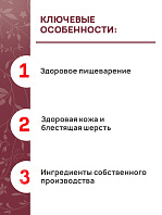 Идеальное сочетание питательной ценности продукта позволяет питомцу быть сытым и счастливым, а владельцу – спокойным за его здоровье.