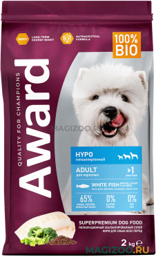Сухой корм AWARD HYPO гипоаллергенный для взрослых собак всех пород с белой рыбой с добавлением брокколи, сельдерея и семян льна.