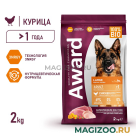 Сухой корм AWARD ADULT LARGE для взрослых собак крупных пород с курицей и индейкой с добавлением тыквы и шиповника.
