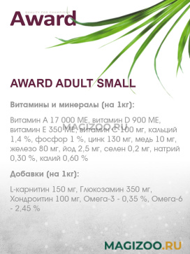 AWARD - это не просто корм, это функциональные рецептуры, которые работают. Выбирая AWARD, Вы выбираете осознанный подход к питанию Вашего питомца!