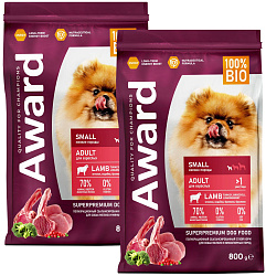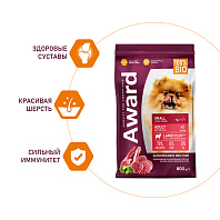 Сухой корм AWARD для взрослых собак мелких и миниатюрных пород с ягненком и индейкой с добавлением брокколи и брусники.